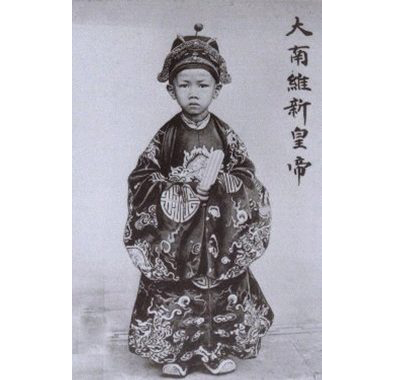 Cinquième fils de l'Empereur Thanh Thai qui a abdiqué en sa faveur, le jeune Prince Nguyen Phuoc Vinh San est intronisé le 5 septembre 1907 à l'âge de 7 ans comme empereur d'Annam sous le nom de Duy Tan qui veut dire Ami des Réformes.
